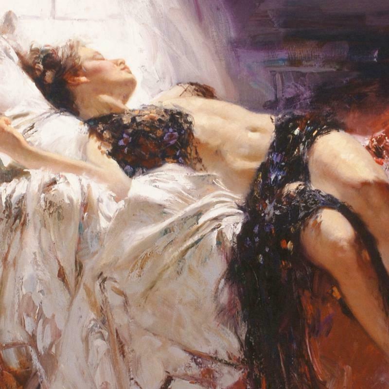 Born Guiseppe Dangelico in Bari, Italy on November 8, 1939, Pino began his studies at the city's Art Institute. He attended Milan's Academy of Brera in 1960 honing in on his talent for painting the human figure. During his two years at the academy, he was influenced by the the Pre-Raphaelites and Macchiaioli. His work was featured in numerous major exhibitions all over Italy and Europe from 1960 to 1979. Two of Italy’s largest publishers, Mondadori and Rizzoli, commissioned him to do book illustrations.