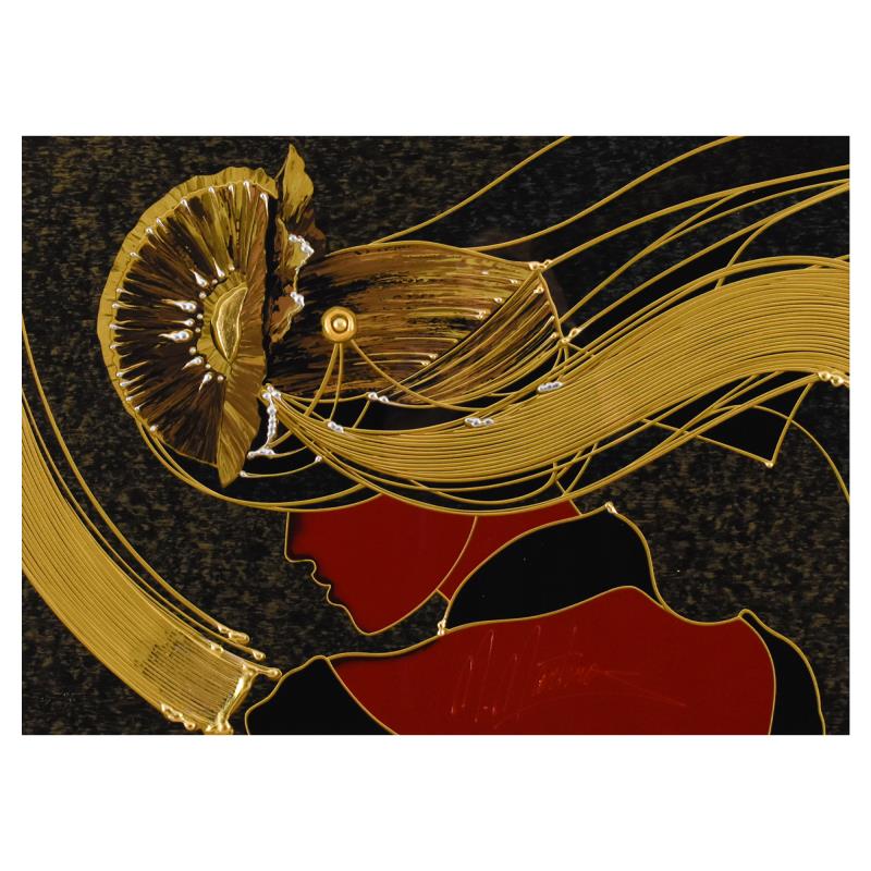 "Golden Grace" is a limited edition mixed media silkscreen on paper by Martiros Manoukian, PP numbered 4/15 and hand signed by the artist. This piece comes custom framed. Includes Letter of Authenticity. Measures approx. 40" x 32" (frame), 28" x 21" (image).