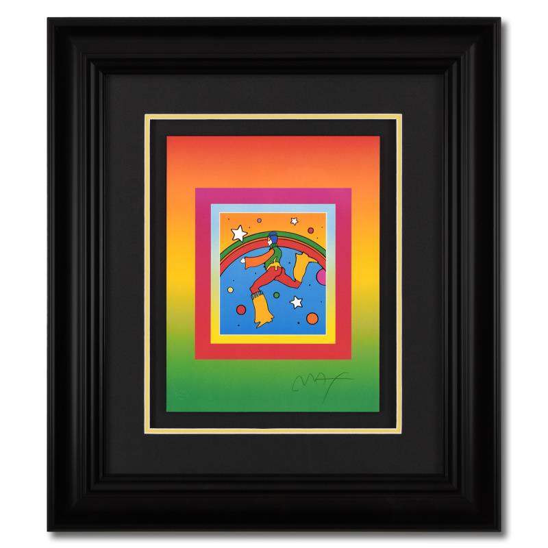 Peter Max, "Cosmic Jumper on Blends" Framed Limited Edition Lithograph, Numbered 445/500 and Hand Signed with Certificate of Authenticity.