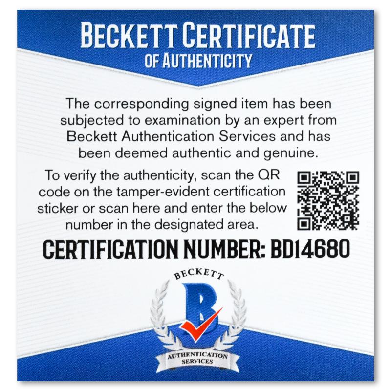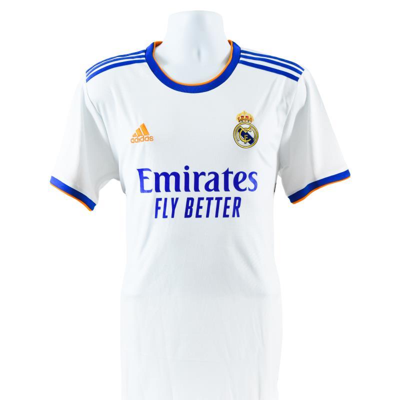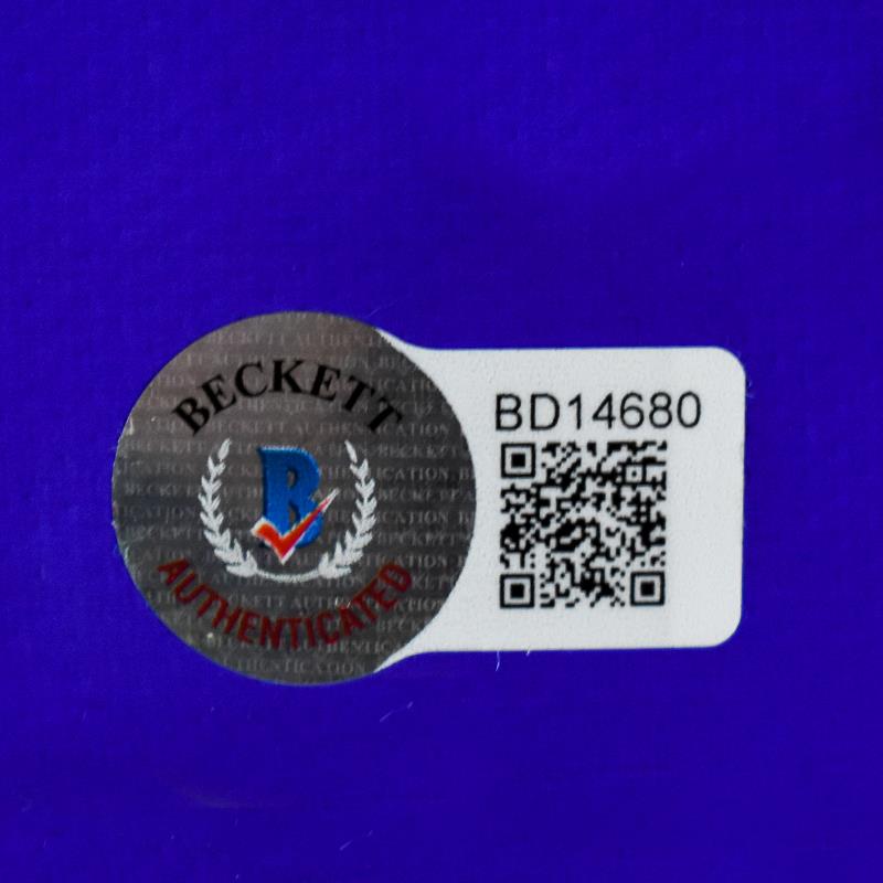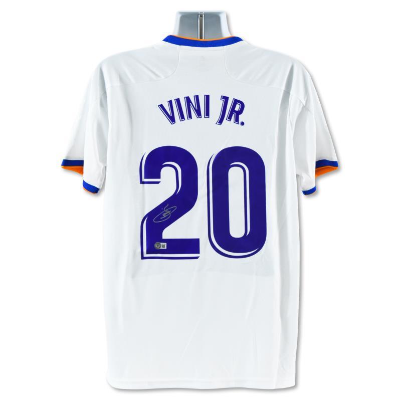 This is a replica Real Madrid soccer jersey autographed by Vini Jr. This piece is presented with a Certificate of Authenticity from Beckett with a QR code and certification number. Measures approx. 30" x 28" (jersey).