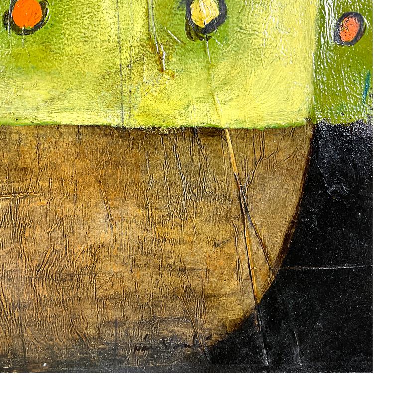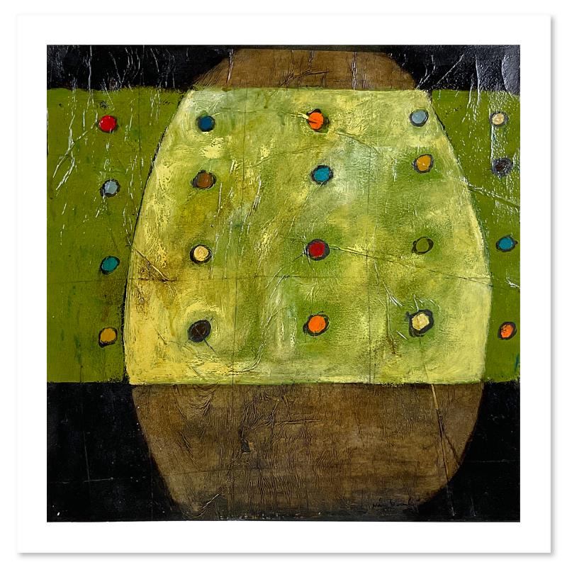 "El Juego" is an original mixed media on paper by Jason Horton, hand signed by the artist. Includes Letter of Authenticity. Measures approx. 30" x 44" (border), 24" x 24" (image). There appears to be fine paper particles stuck to the image; these imperfections are only visible upon close inspection. Also, this piece has an oversized border that needs to be trimmed.