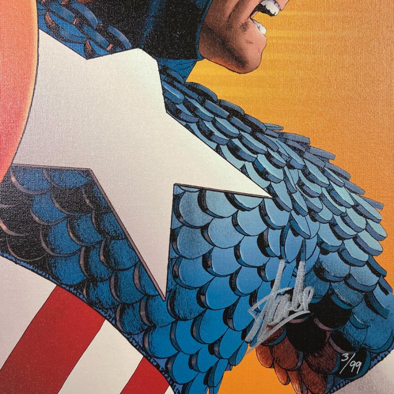 "Avengers #77" is a limited edition giclee on canvas with art by John Cassaday. Officially licensed by Marvel, this piece is numbered 3/99 and hand signed by creative legend Stan Lee (1922-2018). The piece comes with a certificate of authenticity. Measures approximately 27" x 18".