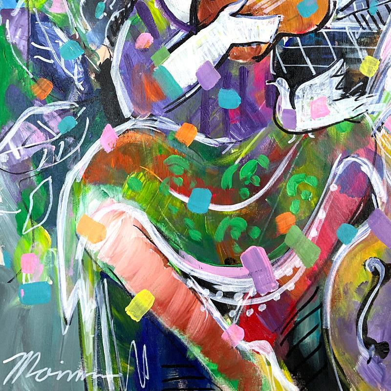 Canvas works are typically framed without plexi so that the vibrancy and interaction with light can be best appreciated.