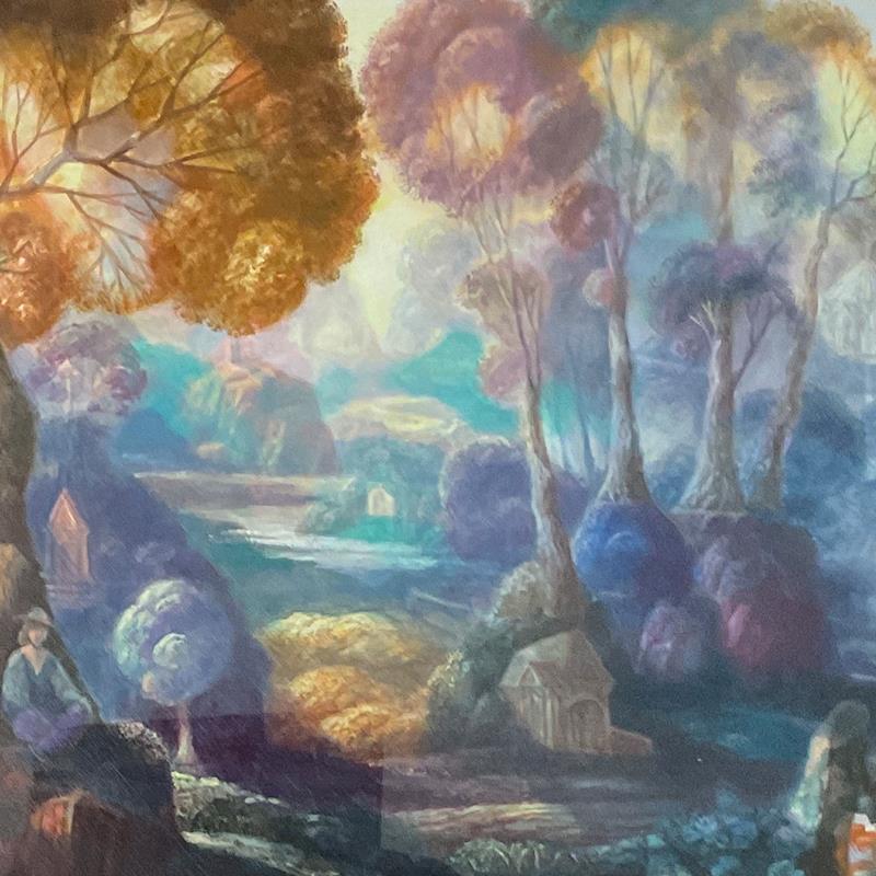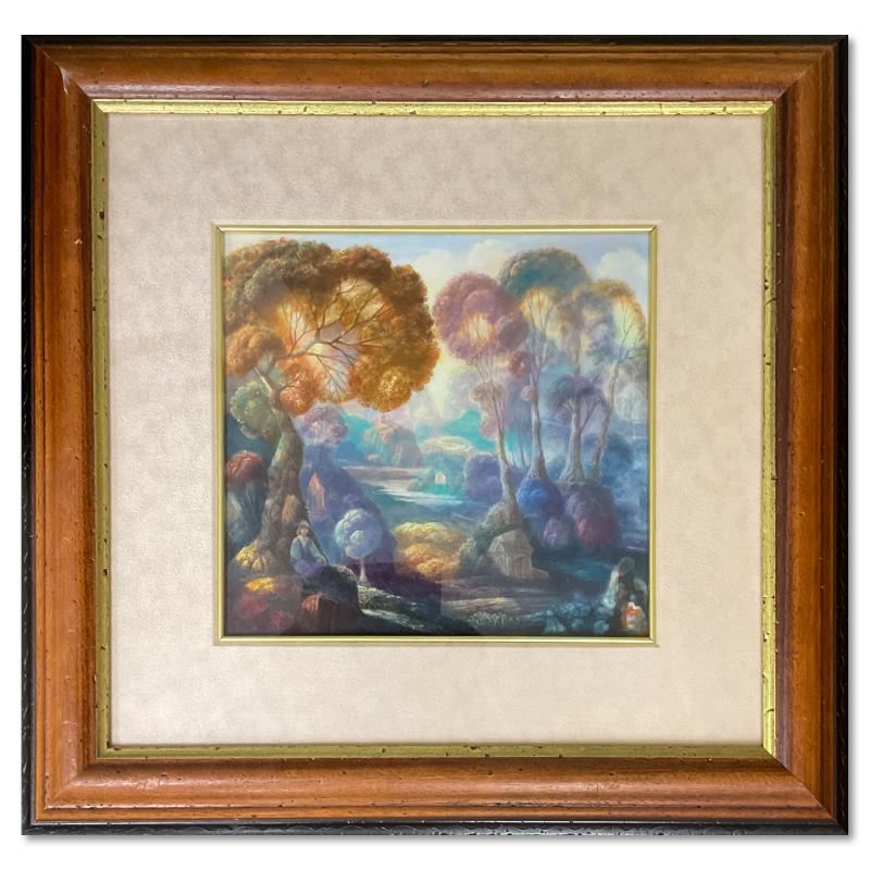 "Wayfarer" is an original watercolor painting on paper by (1914-2009). This piece is not signed. This piece comes framed. Includes Letter of Authenticity. Measures approx. 21.5" x 22" (frame), 10.5" x 11" (image). There is some wear on the frame.