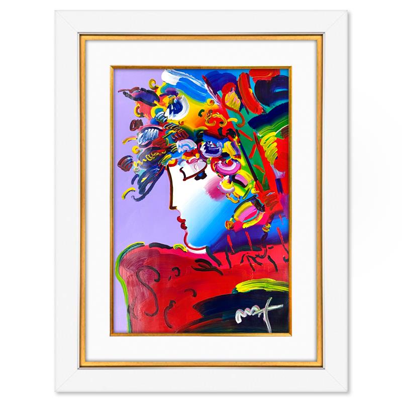Peter Max, "Blushing Beauty" Framed One-of-a-Kind Mixed Media, Hand Signed with Registration Number Certifying Authenticity.