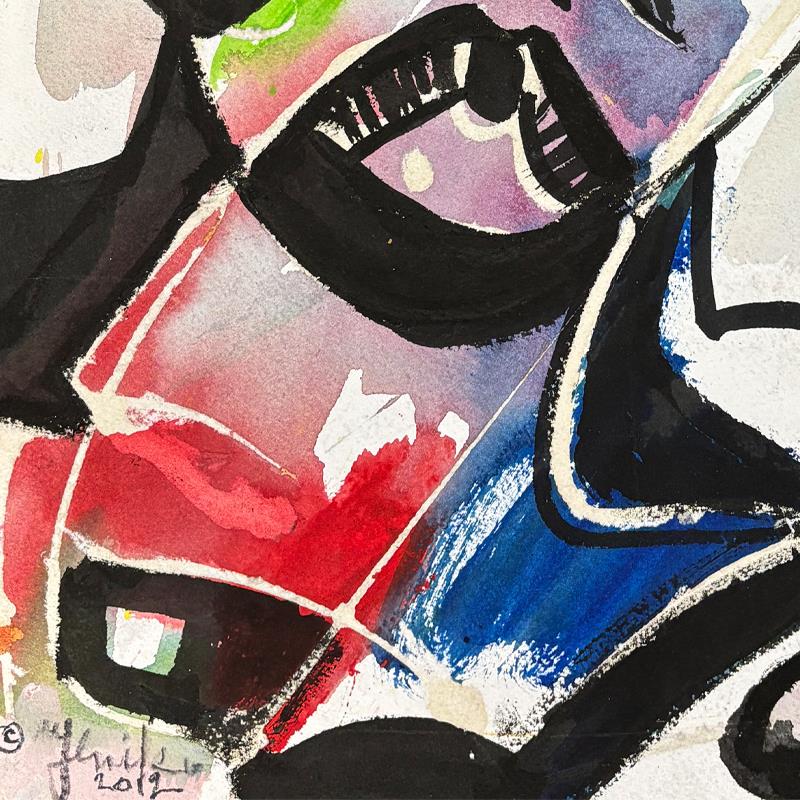 This is an original acrylic painting on paper by Jenik Cook. Hand signed by the artist, it includes Letter of Authenticity. This piece comes from the artist's personal collection. Measures approximately 21.5" x 17.5" (frame), 17.5" x 13.5" (image). This item requires special handling and may have a longer than usual turnaround.