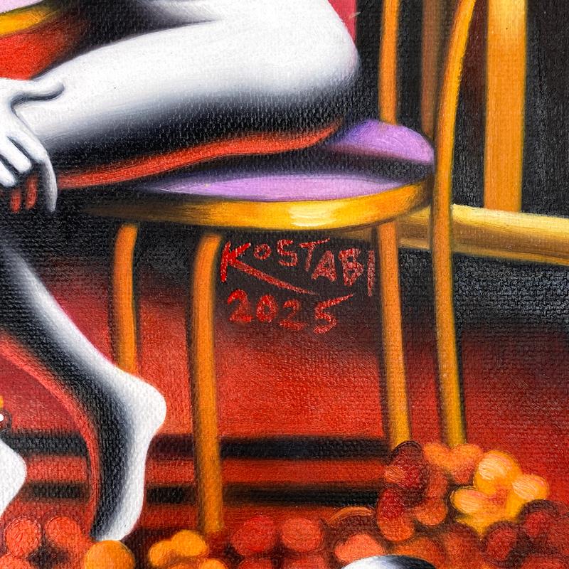 Mark Kostabi, "I Feel Love" Framed Original Oil Painting on Canvas, Hand Signed with a Certificate of Authenticity.