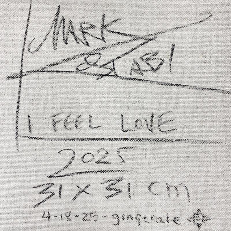 "I Feel Love" is an original oil painting on canvas by Mark Kostabi, hand signed by the artist. This piece comes custom framed. Includes Certificate of Authenticity. Measures approx. 22" x 22" (frame), 12" x 12" (image).