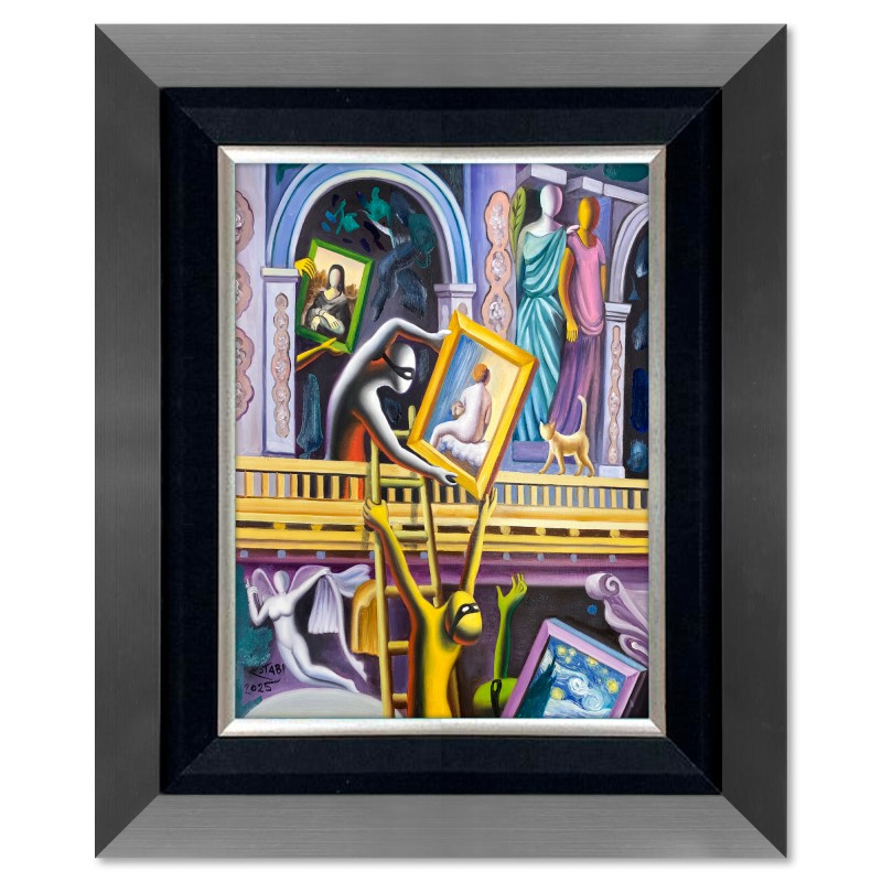 Mark Kostabi, "Shifting" Framed Original Oil Painting on Canvas, Hand Signed with COA