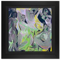 Canvas works are typically framed without plexi so that the vibrancy and interaction with light can be best appreciated.