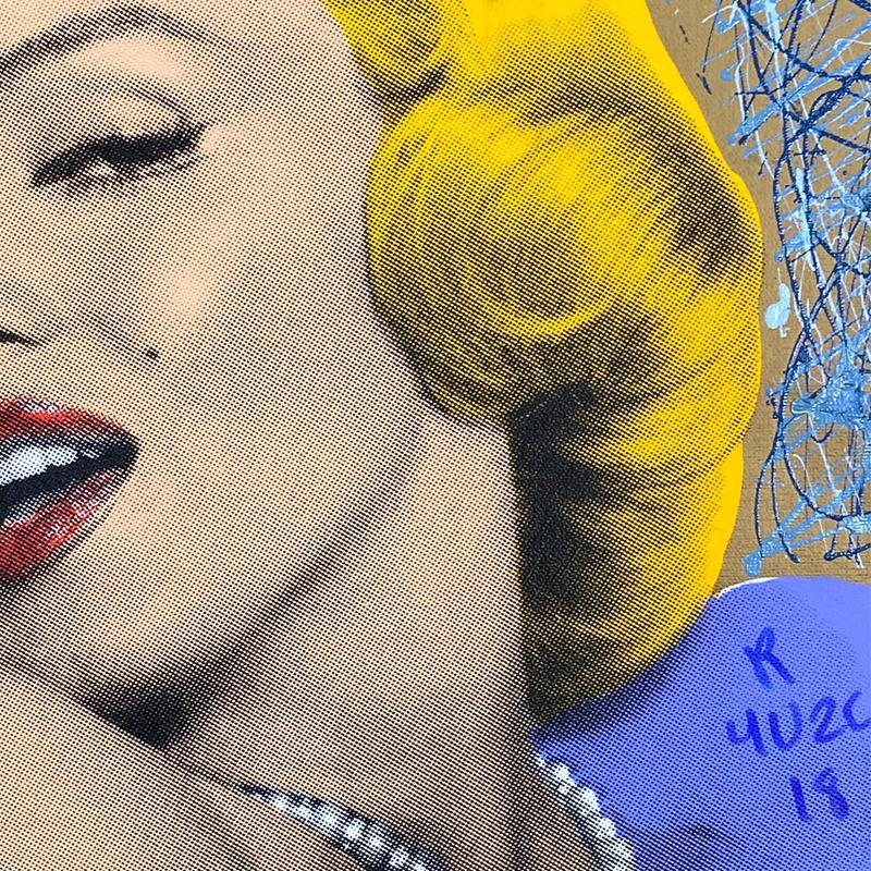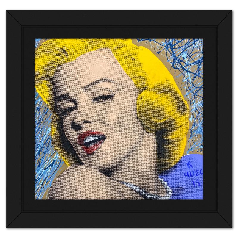 Ringo Daniel Funes (Protege of Andy Warhol's Apprentice, Steve Kaufman), "Marilyn with Pearls" Framed One-of-a-Kind Mixed Media on Canvas, Hand Signed with Letter of Authenticity.