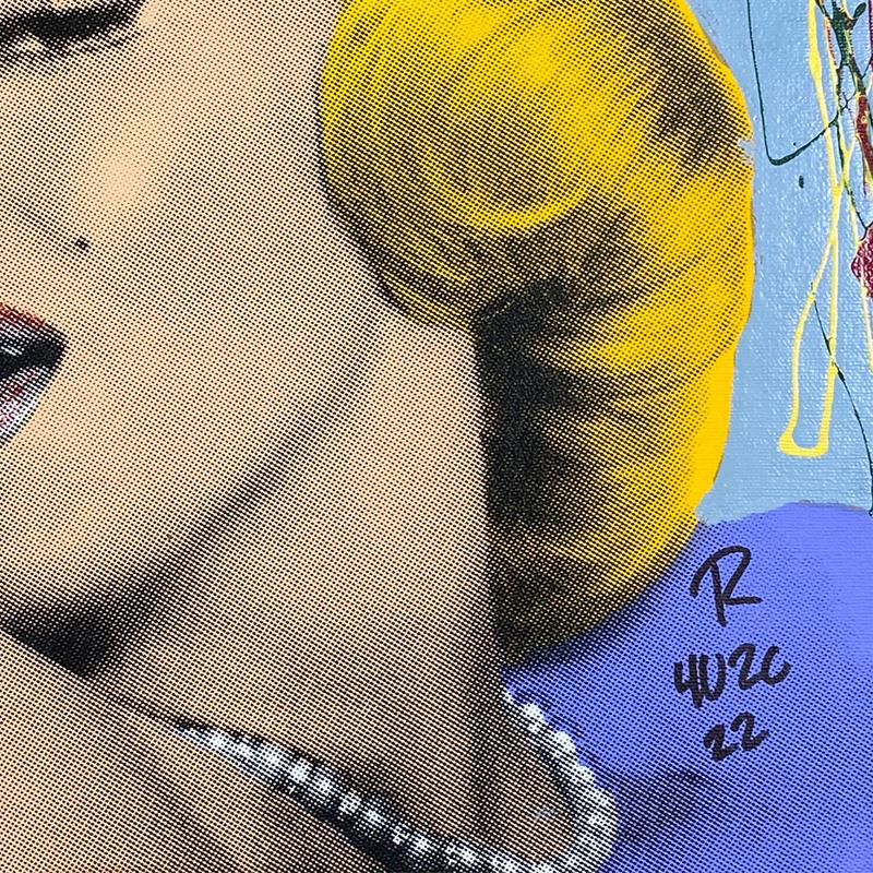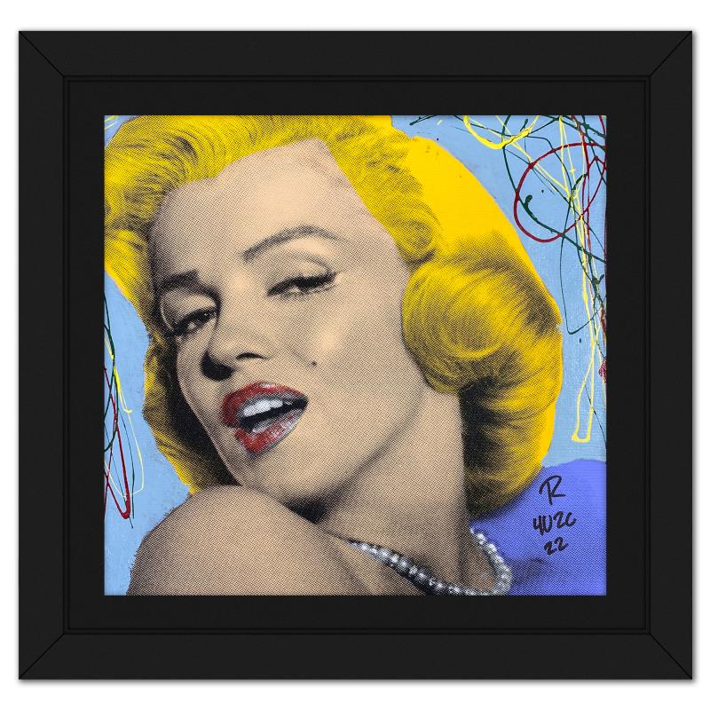 Ringo Daniel Funes (Protege of Andy Warhol's Apprentice, Steve Kaufman), "Marilyn with Pearls" Framed One-of-a-Kind Mixed Media on Canvas, Hand Signed with Letter of Authenticity.