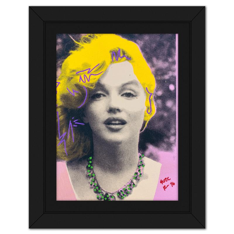 "Young Marilyn in the Park" is a one-of-a-kind hand-pulled mixed media silkscreen on canvas by Ringo (Daniel Funes) - protege of Andy Warhol's apprentice, Steve Kaufman.This piece is hand signed by the artist. This piece comes custom framed. Includes Letter of Authenticity. Measures approx. 16.5" x 13" (frame), 13.5" x 10" (image). This item requires special handling and may have a longer than usual turnaround.