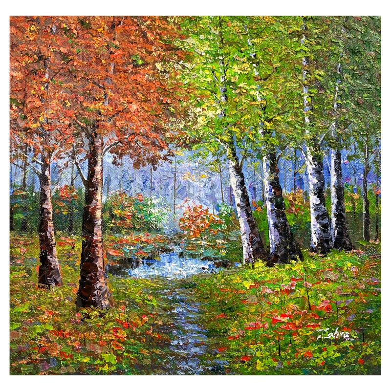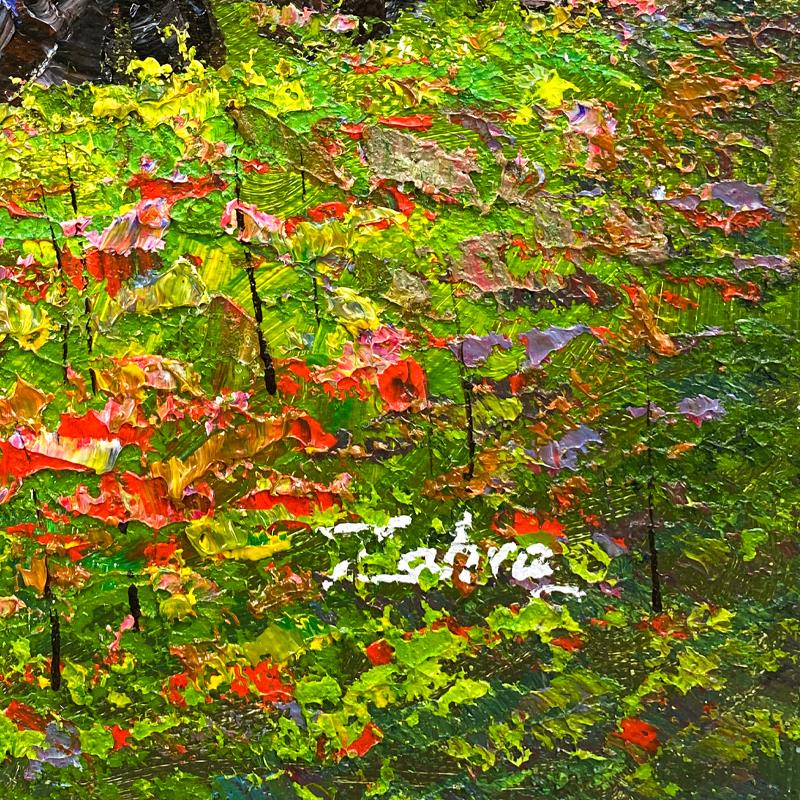 This is an original oil painting on canvas by Zahra, hand signed by the artist. Includes Letter of Authenticity. Measures approx. 30" x 30" (image).