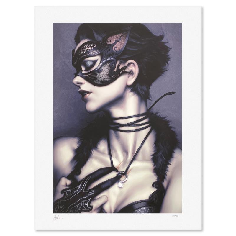 "Catwoman #4" is a limited edition giclee on paper from DC Comics and Stanley "Artgerm" Lau, PP numbered 3/4 and bearing the authorized signature of the artist. Includes Letter of Authenticity. Measures approx. 24" x 18" (border) 20" x 14" (image).