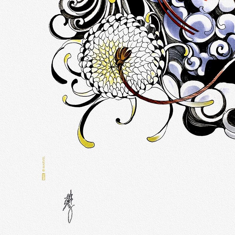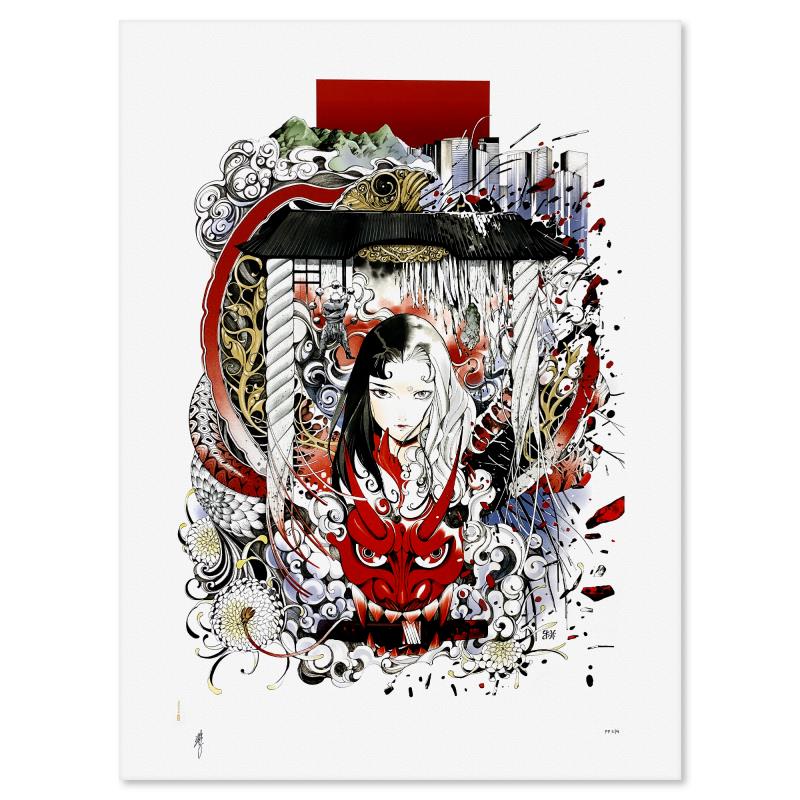 "Demon Days: The Yashida Saga" is a limited edition giclee on paper from Marvel Comics and Peach Momoko, PP numbered 3/4 and bearing the authorized signature of the artist. Includes Letter of Authenticity. Measures approx. 24" x 18" (border) 20" x 14" (image).
