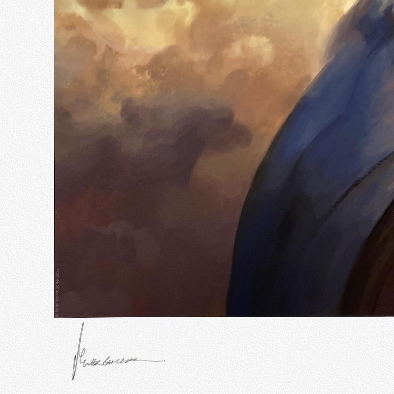 "Binah: Of Flowing Mind" is a limited edition giclee on paper by Peter Mohrbacher, PP numbered 3/4 and bearing the authorized signature of the artist. Includes Letter of Authenticity. Measures approx. 24" x 18" (border) 20" x 14" (image).
