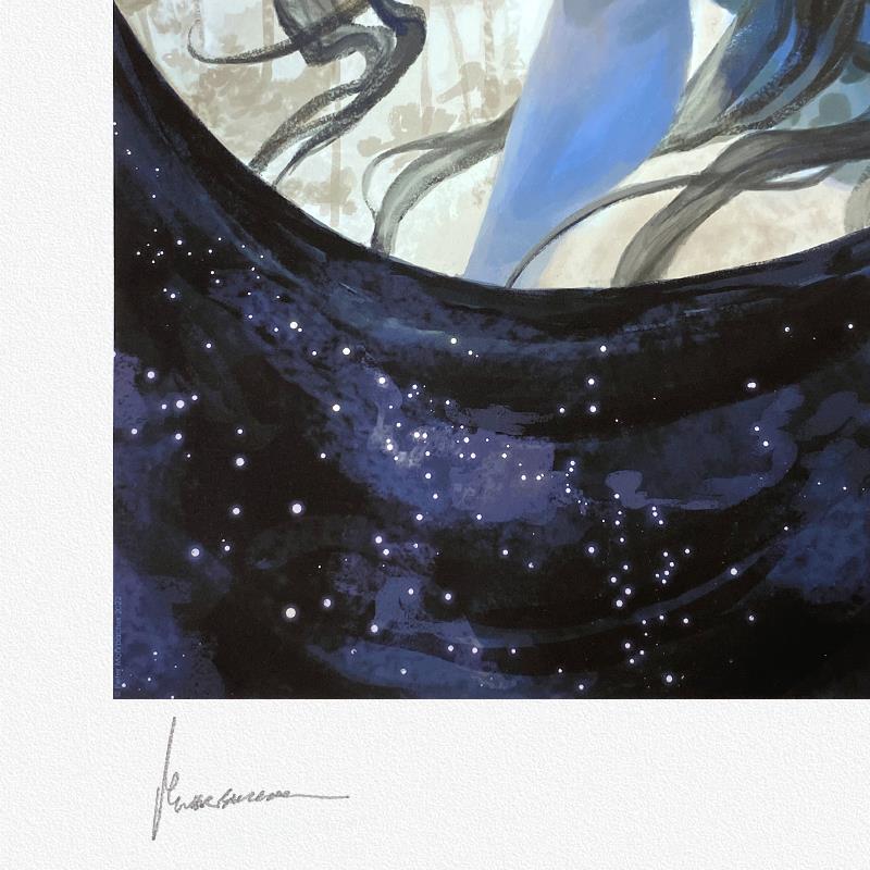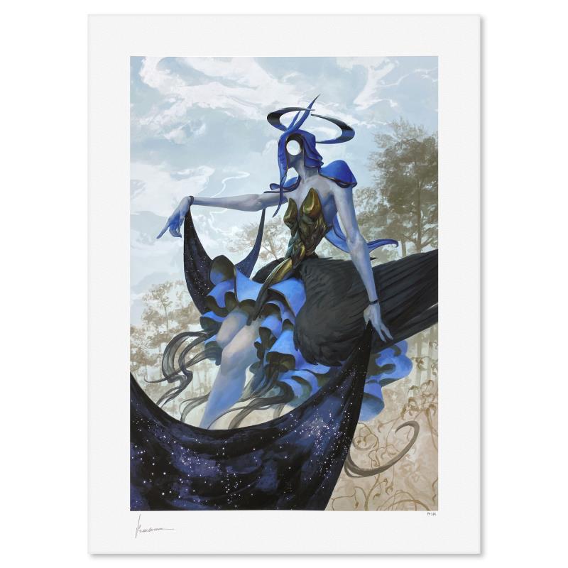 "Leliel: By the Hidden Sun" is a limited edition giclee on paper by Peter Mohrbacher, PP numbered 3/4 and bearing the authorized signature of the artist. Includes Letter of Authenticity. Measures approx. 24" x 18" (border) 20" x 14" (image).