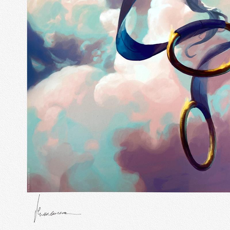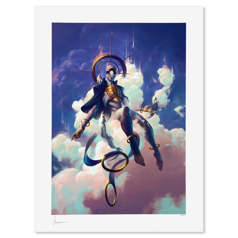 "Sahaqiel: In the Great Expanse" is a limited edition giclee on paper by Peter Mohrbacher, PP numbered 3/4 and bearing the authorized signature of the artist. Includes Letter of Authenticity. Measures approx. 24" x 18" (border) 20" x 14" (image).