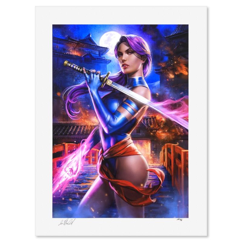 "Psylocke" is a limited edition giclee on paper from Marvel Comics and Ian MacDonald, PP numbered 3/4 and bearing the authorized signature of the artist. Includes Letter of Authenticity. Measures approx. 24" x 18" (border) 20" x 14" (image).
