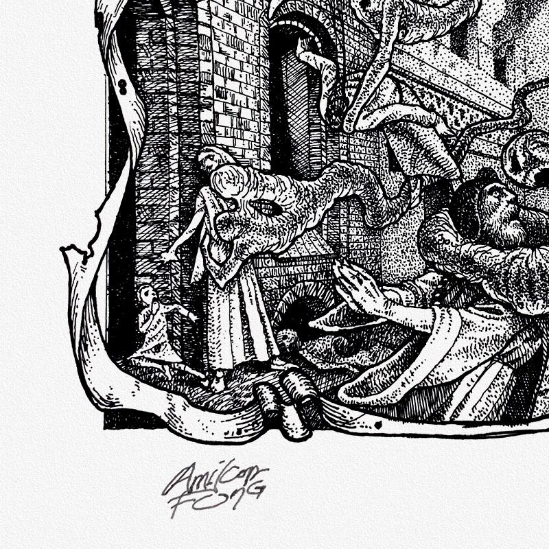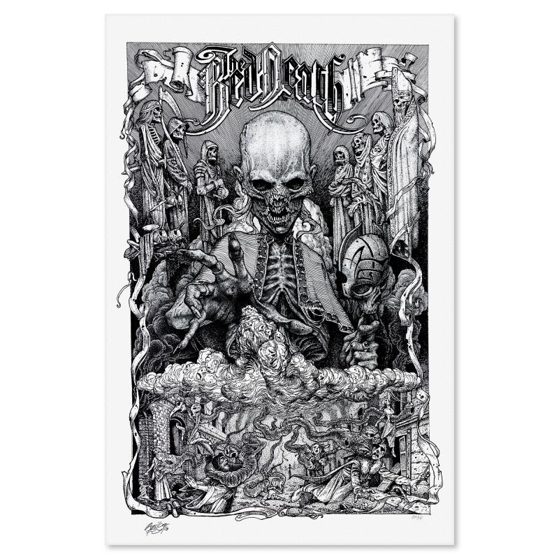 "The Red Death" is a limited edition giclee on paper by Amilcar Fong, PP numbered 3/4 and bearing the authorized signature of the artist. Includes Letter of Authenticity. Measures approx. 18" x 12" (border) 16" x 10" (image).