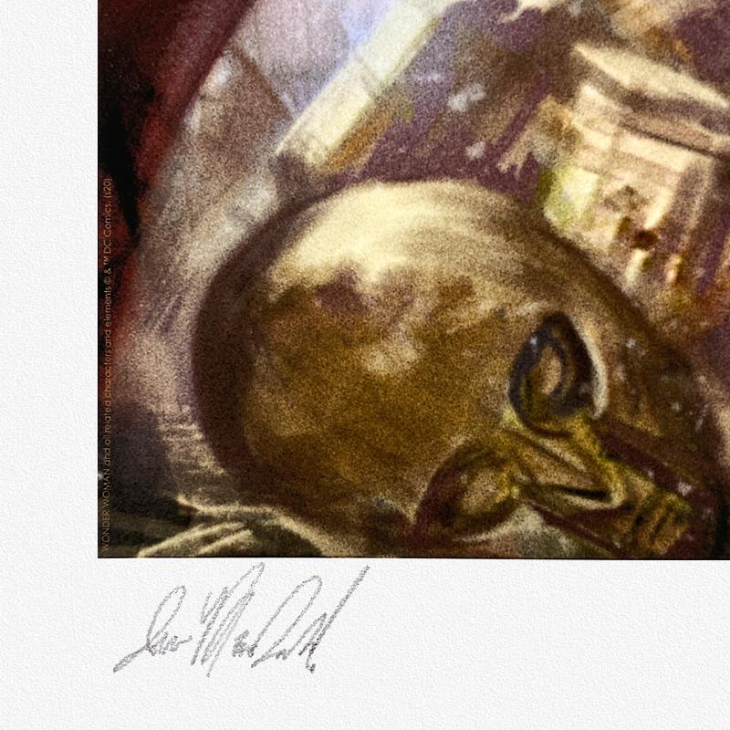"Wonder Woman #755" is a limited edition giclee on paper from DC Comics and Ian MacDonald, PP numbered 3/4 and bearing the authorized signature of the artist. Includes Letter of Authenticity. Measures approx. 24" x 18" (border) 20" x 14" (image).