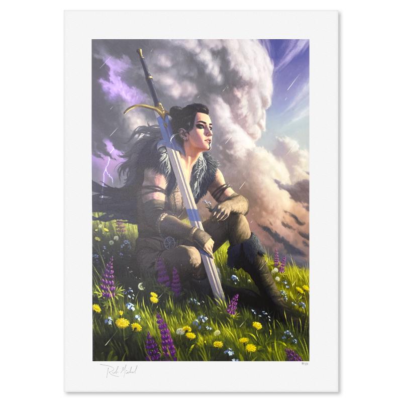 "Yasha Nydoorin: Champion of the Stormlord" is a limited edition giclee on paper by Robson Michel, PP numbered 3/4 and bearing the authorized signature of the artist. Includes Letter of Authenticity. Measures approx. 24" x 18" (border) 20" x 14" (image).