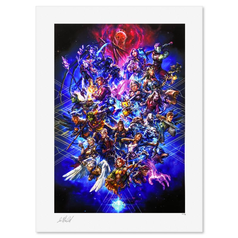 "Critical Role: Threads of Fate" is a limited edition giclee on paper by Ian MacDonald, PP numbered 3/4 and bearing the authorized signature of the artist. Includes Letter of Authenticity. Measures approx. 24" x 18" (border) 20" x 14" (image).