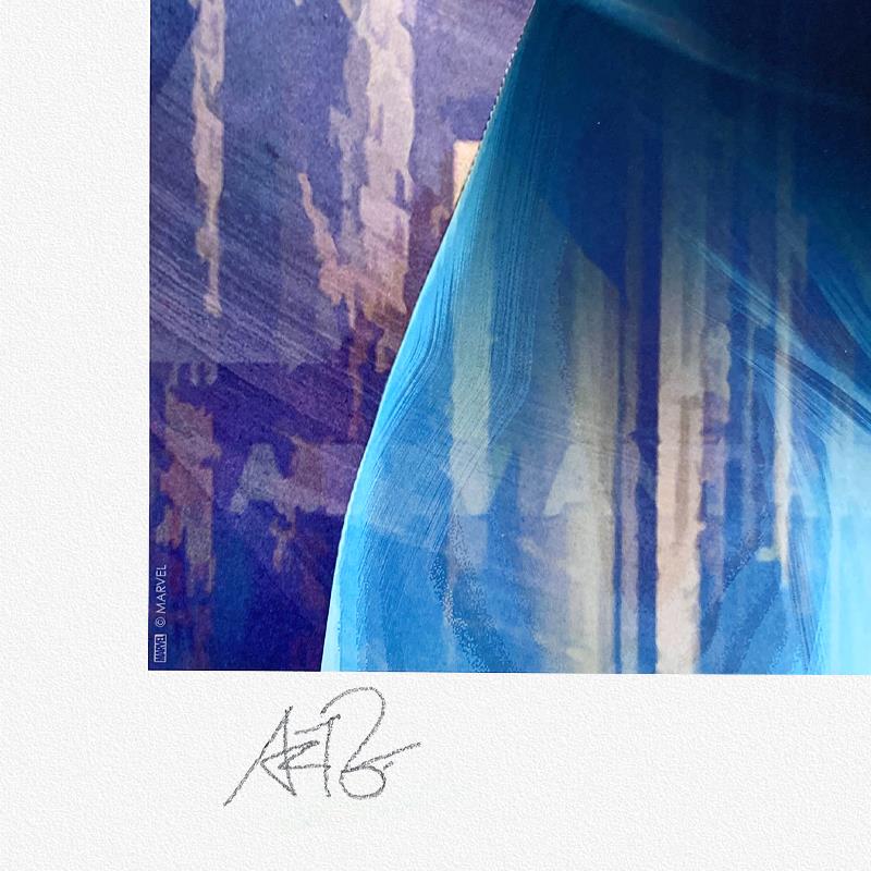 "Sue Storm: Invisible Woman" is a limited edition giclee on paper from Marvel Comics and Stanley "Artgerm" Lau, PP numbered 3/4 and bearing the authorized signature of the artist. Includes Letter of Authenticity. Measures approx. 24" x 18" (border) 20" x 14" (image).