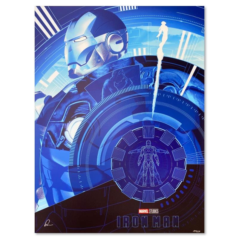 "Iron Man - Variant" is a limited edition giclee on paper from Marvel Comics and Doaly, PP numbered 3/4 and bearing the authorized signature of the artist. Includes Letter of Authenticity. Measures approx. 24" x 18" (image).