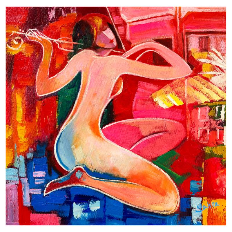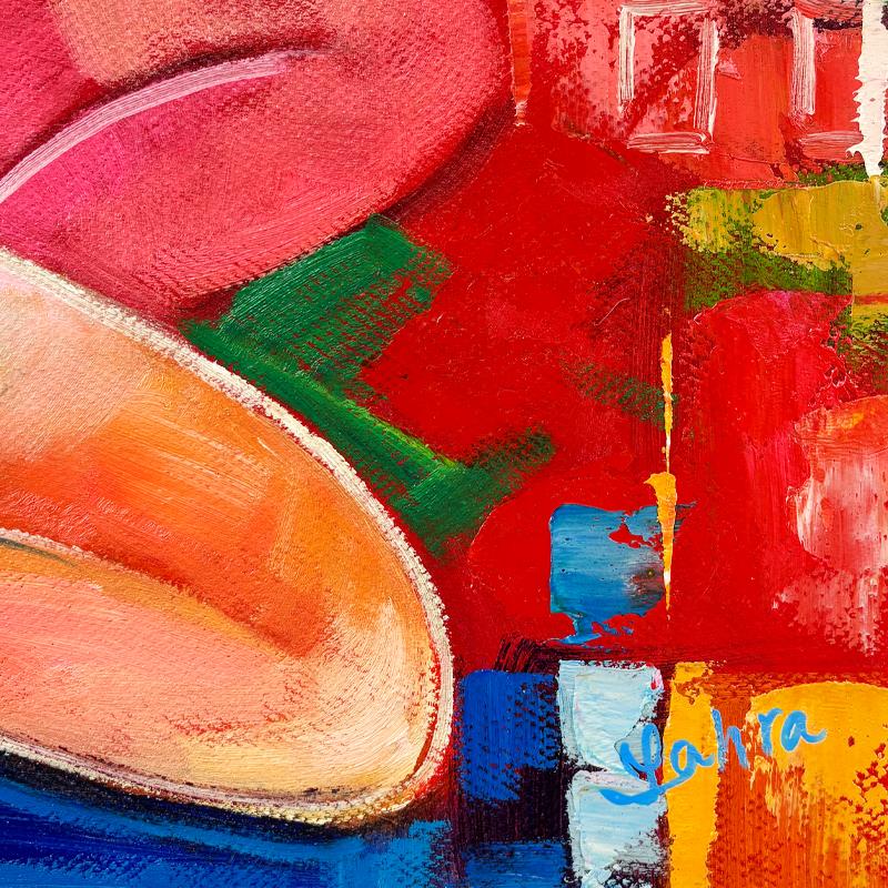 This is an original acrylic painting on canvas by Zahra, hand signed by the artist. Includes Letter of Authenticity. Measures approx. 24" x 24" (image).