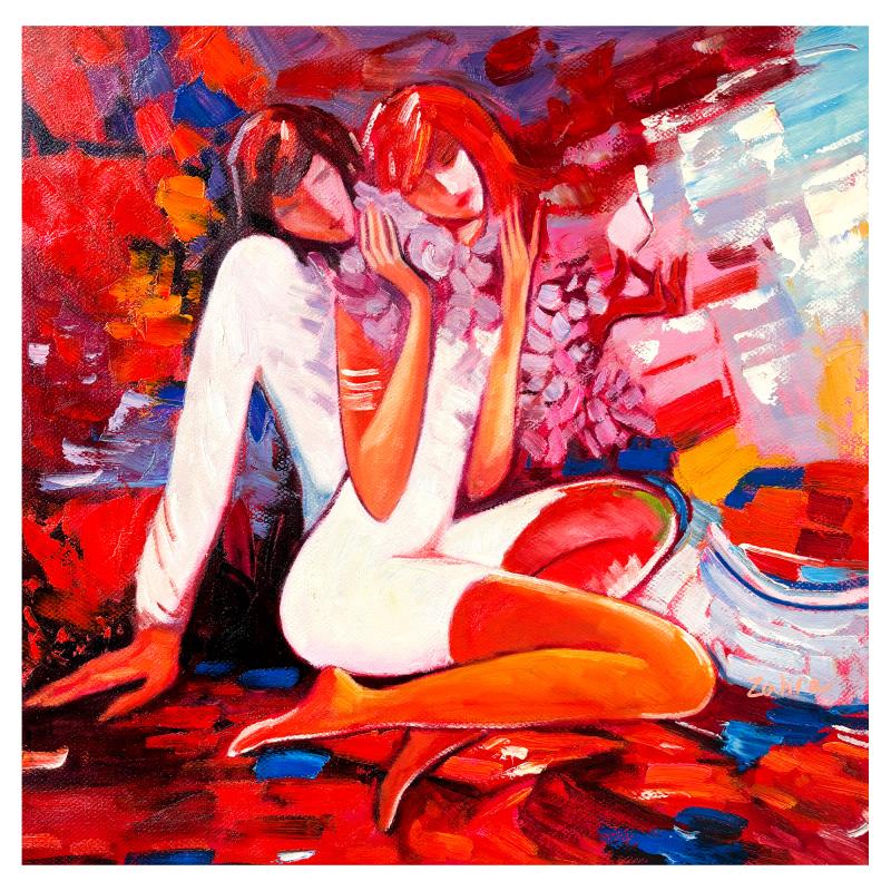 This is an original acrylic painting on canvas by Zahra, hand signed by the artist. Includes Letter of Authenticity. Measures approx. 24" x 24" (image).