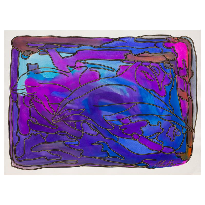 "Untitled" is an original painting, gouache on paper by Alex Echo. Hand signed and accompanied by a letter of authenticity. Measures approximately 30" x 22.5".