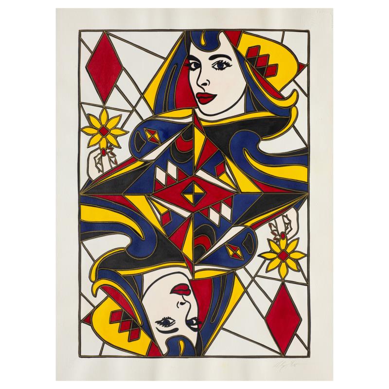 "Queen Of Diamonds" is an original painting, gouache on paper by Alex Echo. Hand signed and accompanied by a letter of authenticity. Measures approximately 25.5" x 18".