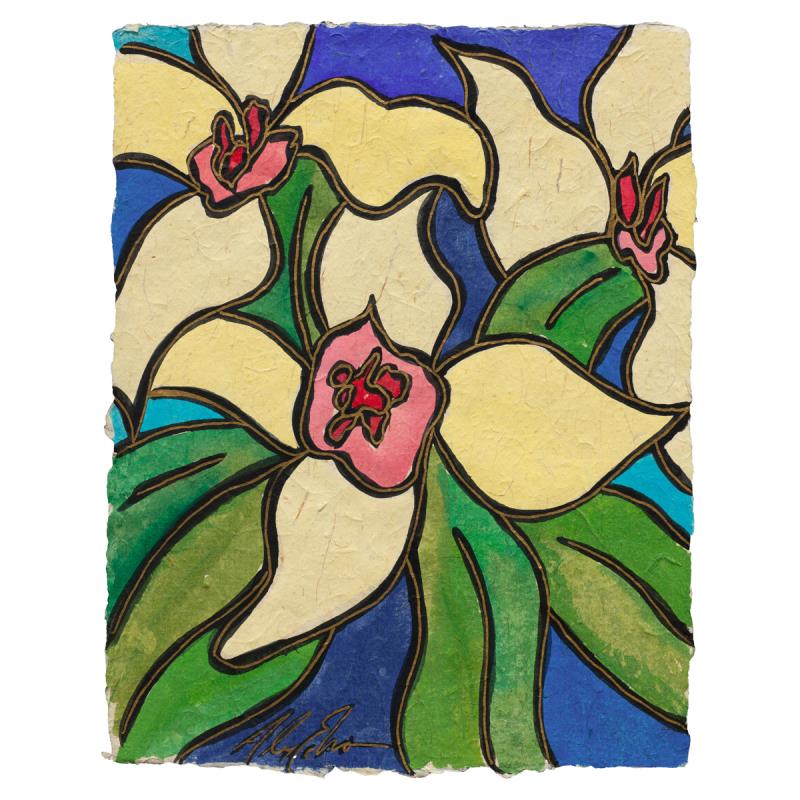 Only acid free materials contact the art for long term preservation. Paper works are framed with plexi.