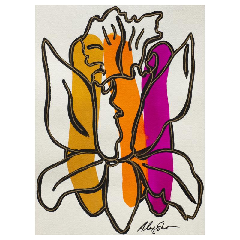 "Auto Floral For Fernand" is an original painting, ink, gold pen, and watercolor on paper by Alex Echo. Hand signed and accompanied by a letter of authenticity. Measures approximately 12" x 9".
