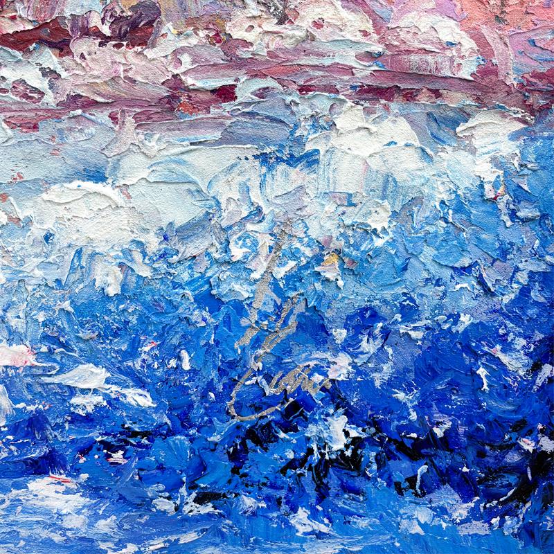 Canvas works are typically framed without plexi so that the vibrancy and interaction with light can be best appreciated.