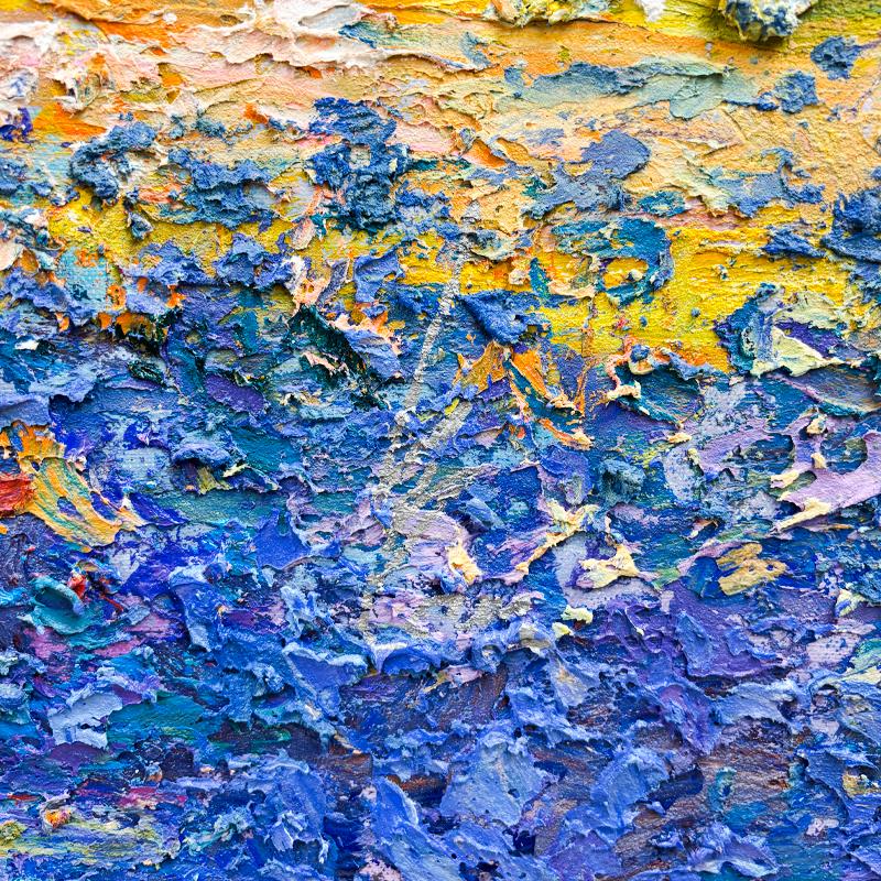 Canvas works are typically framed without plexi so that the vibrancy and interaction with light can be best appreciated.