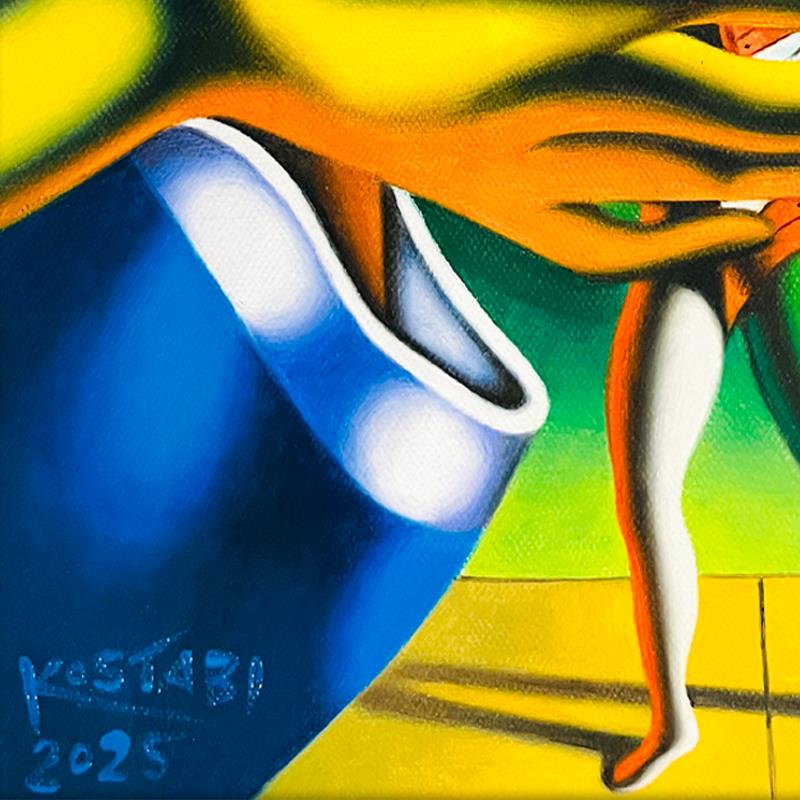 Mark Kostabi, Framed Original Oil Painting on Canvas, Hand Signed with a Certificate of Authenticity.