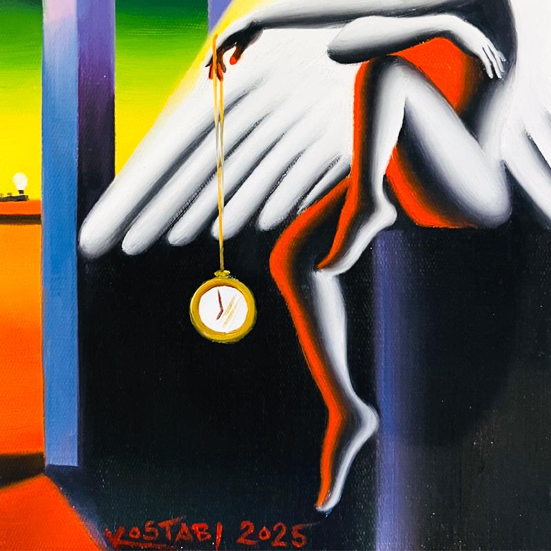 Mark Kostabi, Framed Original Oil Painting on Canvas, Hand Signed with a Certificate of Authenticity.