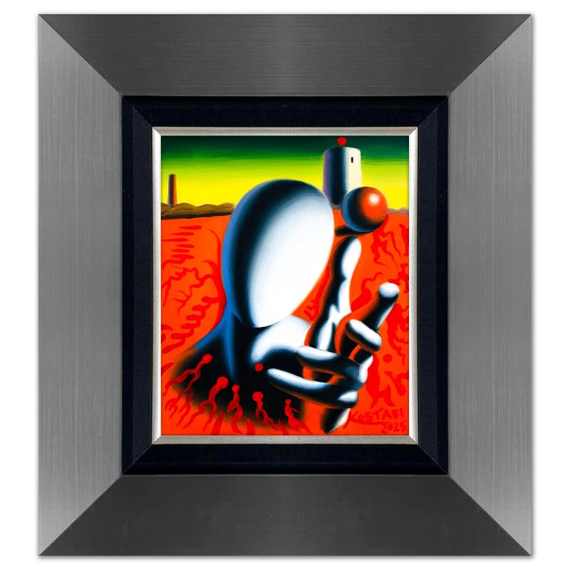 This is an original oil painting on canvas by Mark Kostabi, hand signed by the artist. This piece comes custom framed. Includes Certificate of Authenticity. Measures approx. 22" x 20" (frame), 12" x 10" (image). This item requires special handling and may have a longer than usual turnaround.