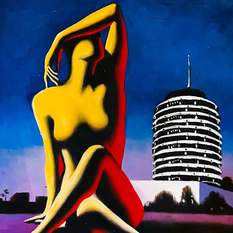 Mark Kostabi, Framed Original Oil Painting on Canvas, Hand Signed with a Certificate of Authenticity.