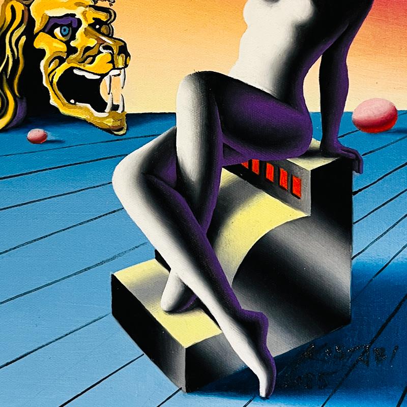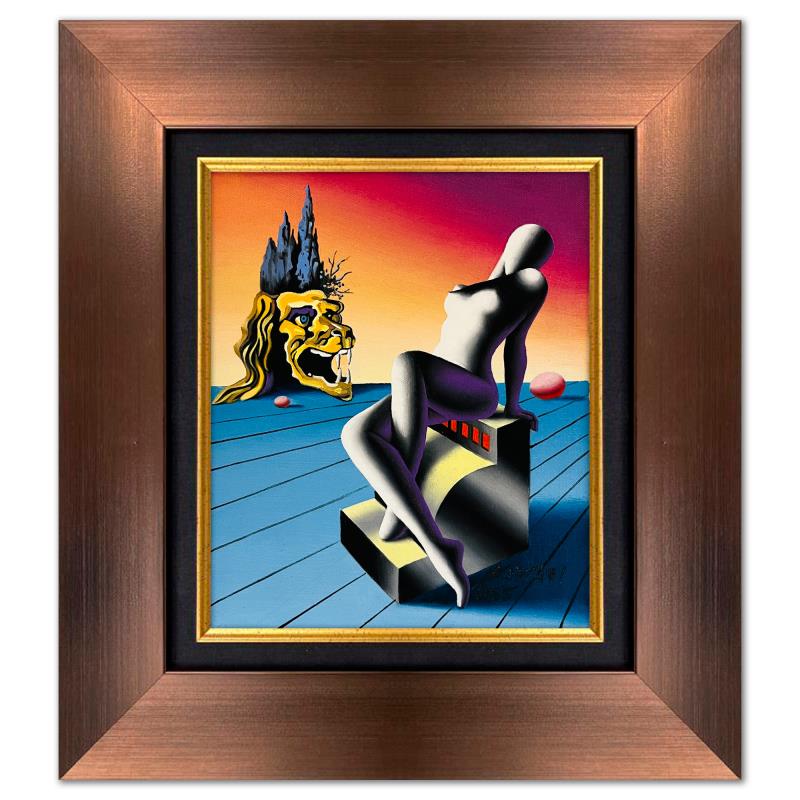 This is an original oil painting on canvas by Mark Kostabi, hand signed by the artist. This piece comes custom framed. Includes Certificate of Authenticity. Measures approx. 22" x 20" (frame), 12" x 10" (image). This item requires special handling and may have a longer than usual turnaround.