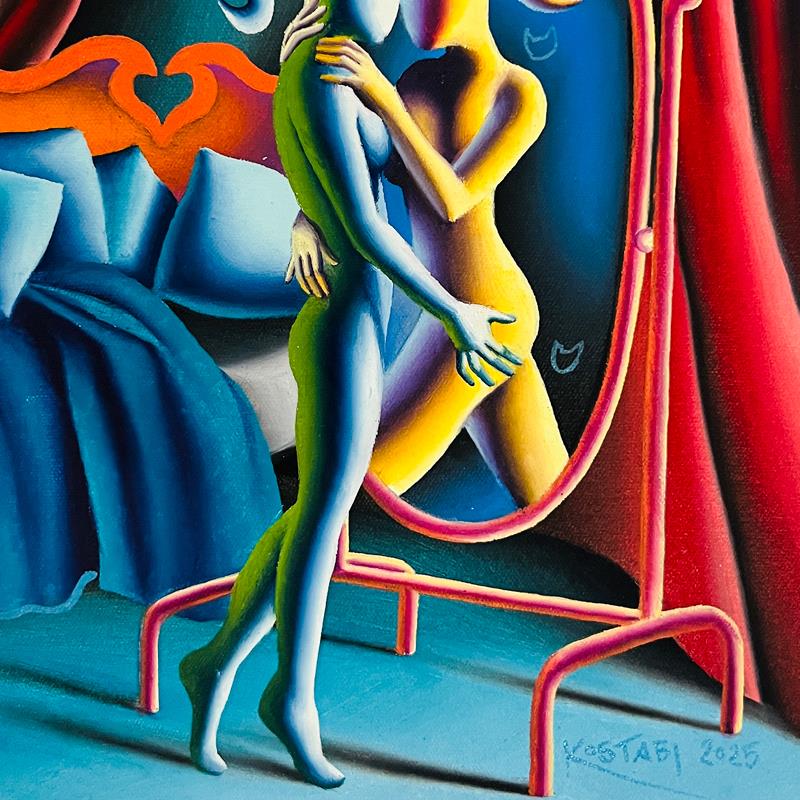 Mark Kostabi, Framed Original Oil Painting on Canvas, Hand Signed with a Certificate of Authenticity.