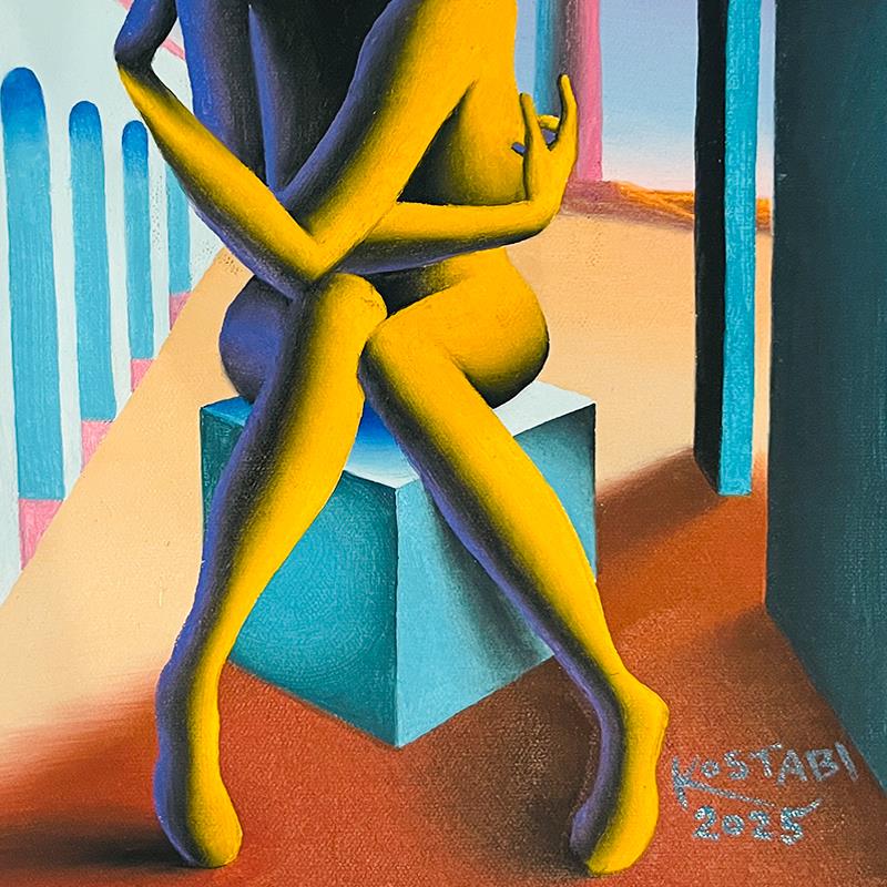 Mark Kostabi, Framed Original Oil Painting on Canvas, Hand Signed with a Certificate of Authenticity.