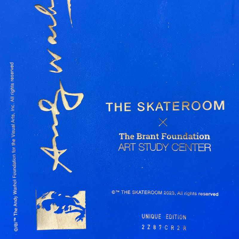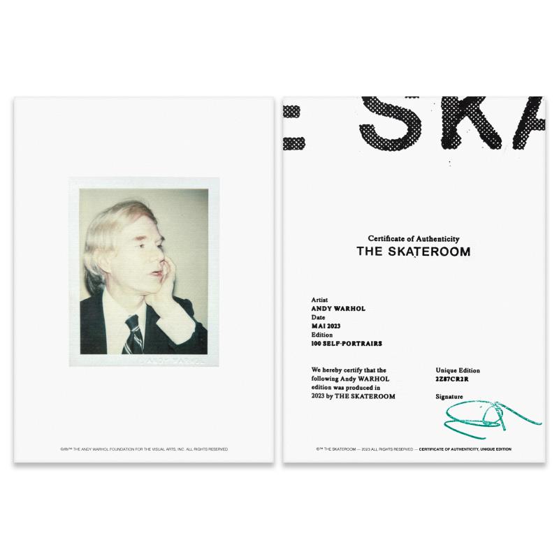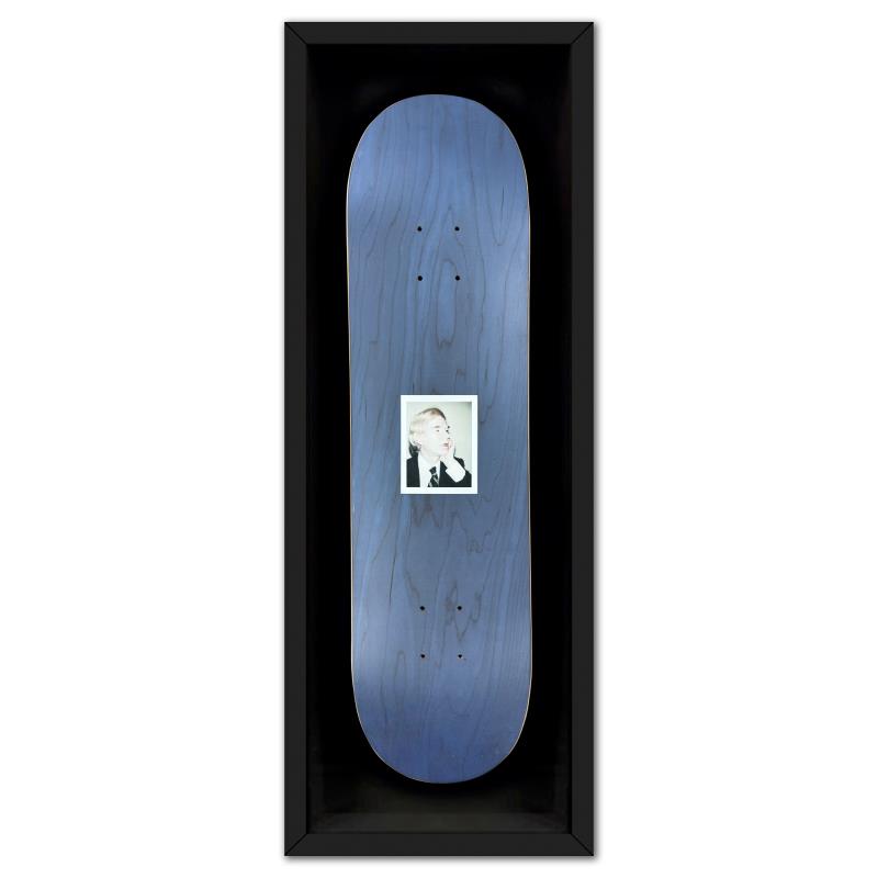 Self-Portrait (Blue) is a one-of-a-kind unique edition skateboard by Andy Warhol (1928-1987), bearing the plate signature inverso of the artist. This piece comes custom framed. This piece is from a unique edition in partnership with The Brant Foundation. Each edition within the collection has its own color hue and unique Andy Warhol polaroid photograph printed on the board inverso. This piece comes custom framed. Includes Certificate of Authenticity. Measures approx. 38" x 14.5" (frame), 32" x 8.5" (skateboard).This item requires special handling and may have longer than usual turnaround.
