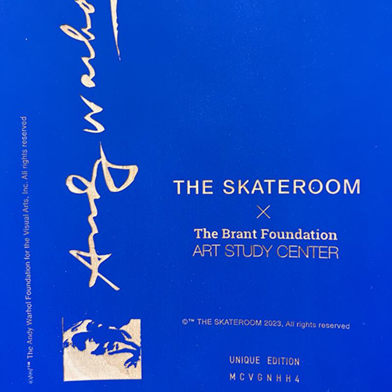 Self-Portrait (Blue) is a one-of-a-kind unique edition skateboard by Andy Warhol (1928-1987), bearing the plate signature inverso of the artist. This piece comes custom framed. This piece is from a unique edition in partnership with The Brant Foundation. Each edition within the collection has its own color hue and unique Andy Warhol polaroid photograph printed on the board inverso. This piece comes custom framed. Includes Certificate of Authenticity. Measures approx. 38" x 14.5" (frame), 32" x 8.5" (skateboard).This item requires special handling and may have longer than usual turnaround.