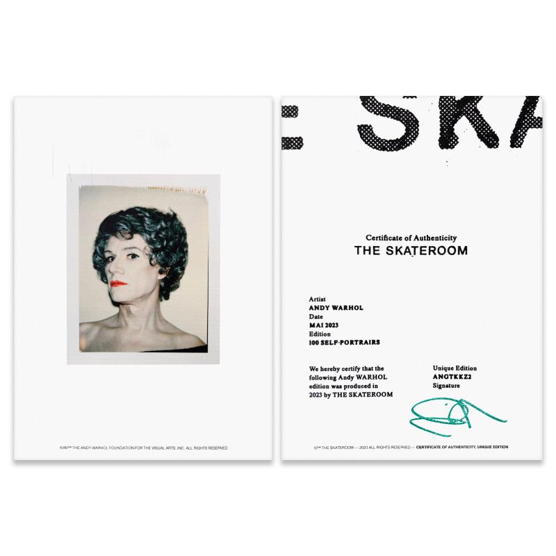Self-Portrait (Grey) is a one-of-a-kind unique edition skateboard by Andy Warhol (1928-1987), bearing the plate signature inverso of the artist. This piece comes custom framed. This piece is from a unique edition in partnership with The Brant Foundation. Each edition within the collection has its own color hue and unique Andy Warhol polaroid photograph printed on the board inverso. This piece comes custom framed. Includes Certificate of Authenticity. Measures approx. 38" x 14.5" (frame), 32" x 8.5" (skateboard).This item requires special handling and may have longer than usual turnaround.
