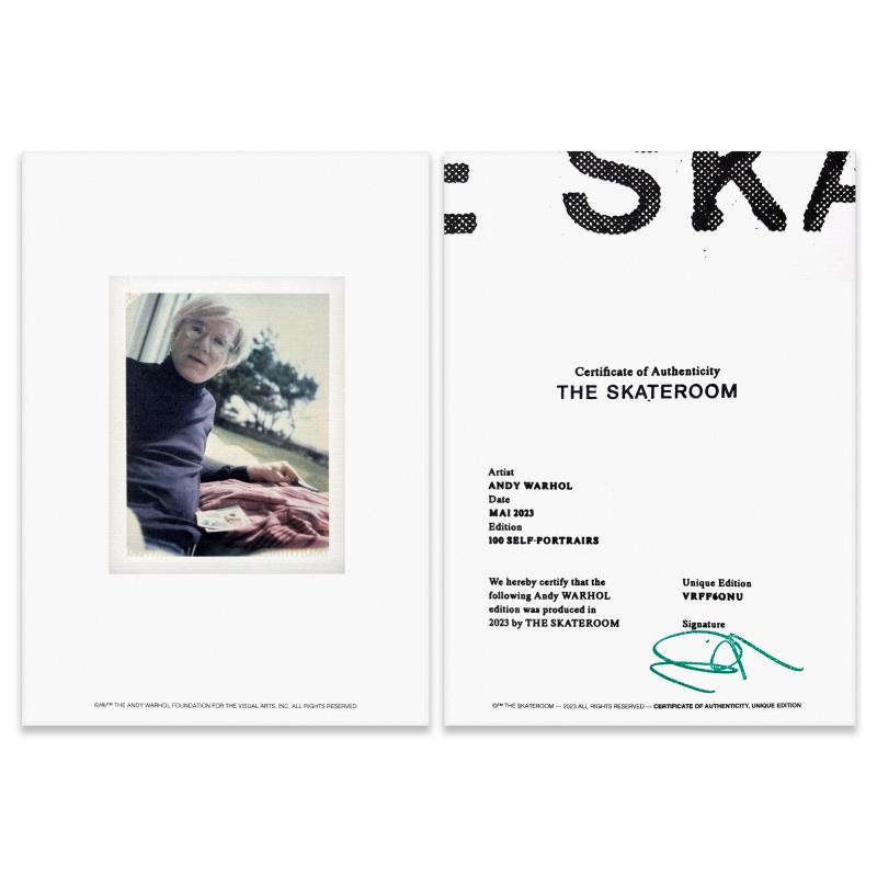 Self-Portrait (Yellow) is a one-of-a-kind unique edition skateboard by Andy Warhol (1928-1987), bearing the plate signature inverso of the artist. This piece comes custom framed. This piece is from a unique edition in partnership with The Brant Foundation. Each edition within the collection has its own color hue and unique Andy Warhol polaroid photograph printed on the board inverso. This piece comes custom framed. Includes Certificate of Authenticity. Measures approx. 38" x 14.5" (frame), 32" x 8.5" (skateboard).This item requires special handling and may have longer than usual turnaround.