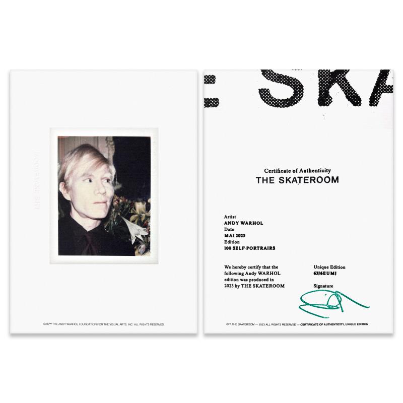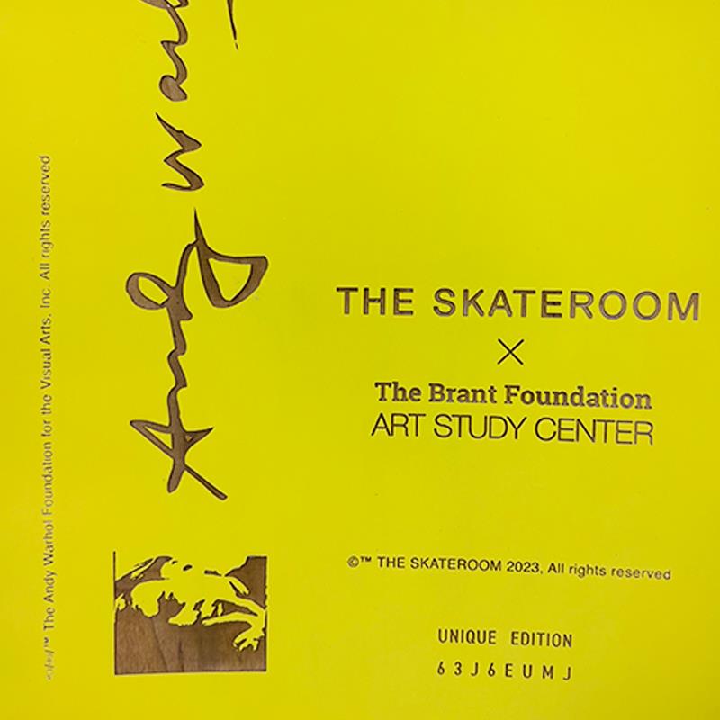 Self-Portrait (Yellow) is a one-of-a-kind unique edition skateboard by Andy Warhol (1928-1987), bearing the plate signature inverso of the artist. This piece comes custom framed. This piece is from a unique edition in partnership with The Brant Foundation. Each edition within the collection has its own color hue and unique Andy Warhol polaroid photograph printed on the board inverso. This piece comes custom framed. Includes Certificate of Authenticity. Measures approx. 38" x 14.5" (frame), 32" x 8.5" (skateboard).This item requires special handling and may have longer than usual turnaround.